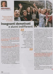 In mezzo ci sono voci che richiedono riflessioni di molte pagine, come Genitori, sui comportamenti dei quali la professoressa è più severa che indulgente. O folgoranti come Motorino, premio per il ragazzino promosso, regalo consolatorio per quello bocciato. Non mancano parole un tempi ignote come WWW: «E’ vero, mio figlio non ha i libri di testo» diceva un giovane e disinvolto papà. «Ma ha il collegamento Internet illimitato e i compiti può farli al computer». (…)